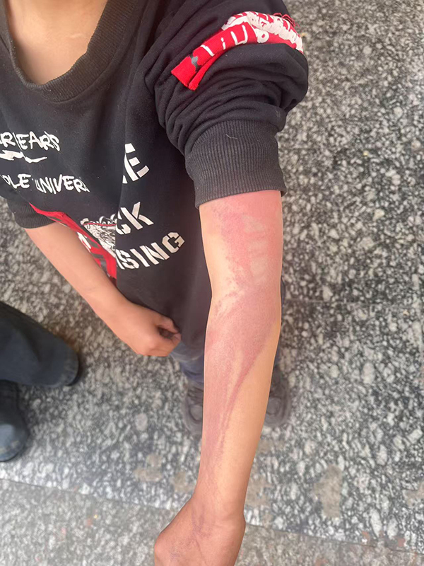 男童手臂发红、肿胀。图片来源:受访者提供