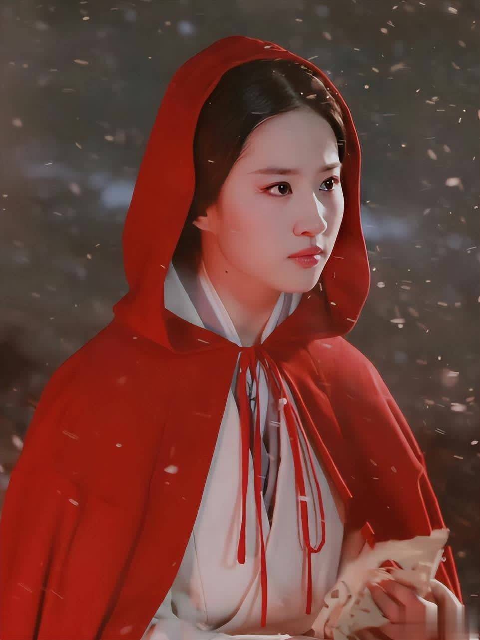 这部电影中,她的妆造并不多,只用简简单单的一身红色或者黑色衣裳,就足以展现出她那份清冷的美感,红衣雪中落泪图让人心疼,黑衣雾中奔跑时,满脸悲伤更是美的心动。