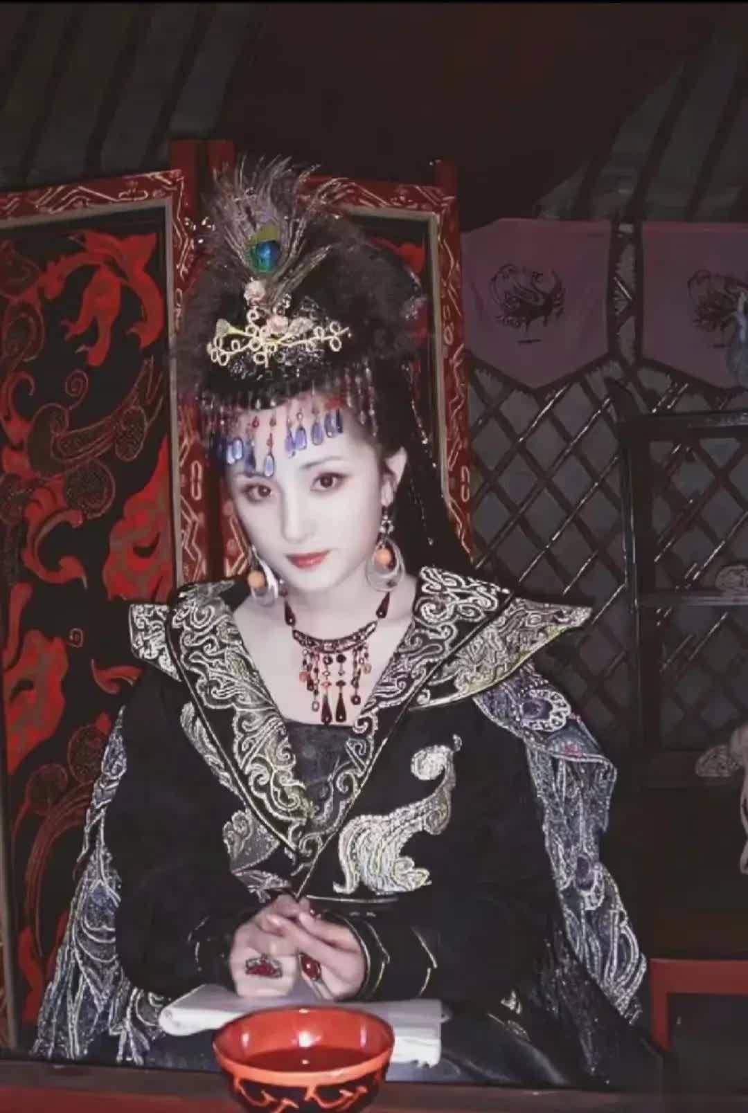 剧中王昭君有很多不同颜色的衣服,其中出现最多次的是她一身红衣,但最让人印象深刻的却是一身黑金衣服的她,头戴各式珠宝,肌肤白皙如玉,贵气与灵气同时冲出屏幕。